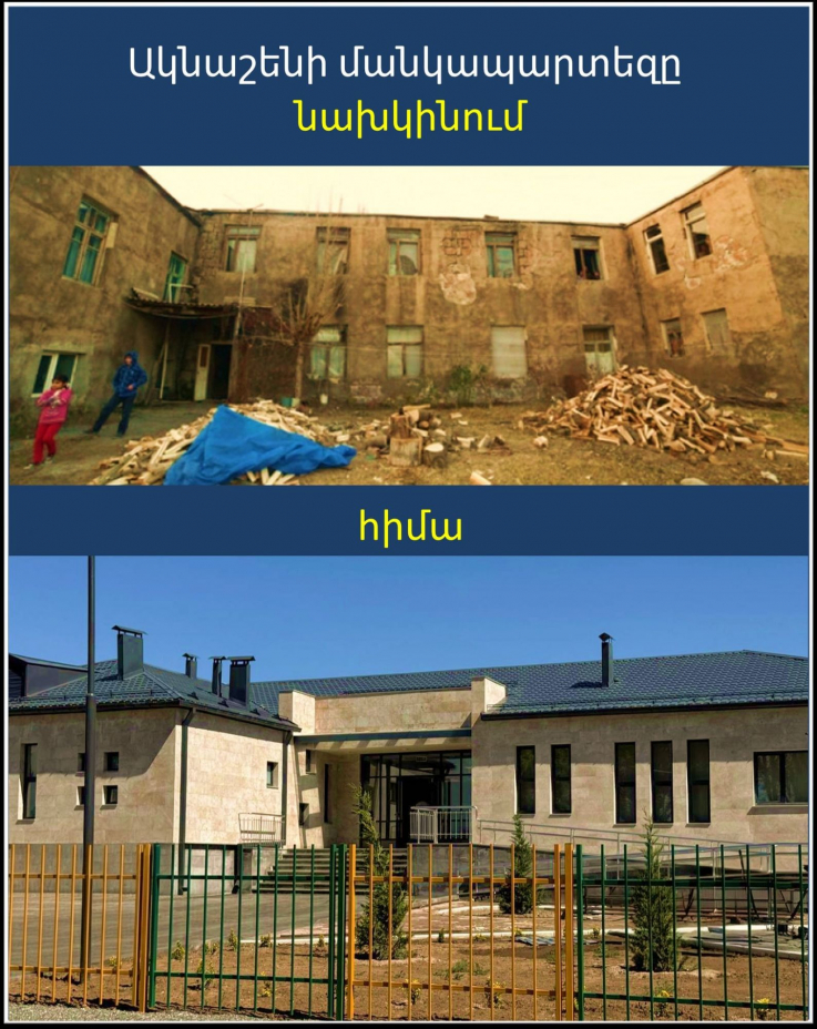 «Ակնաշենի մանկապարտեզի վթարային շենքը 30 տարի չէր գործում, այսօր գյուղն ունի նորակառույց մանկապարտեզ։