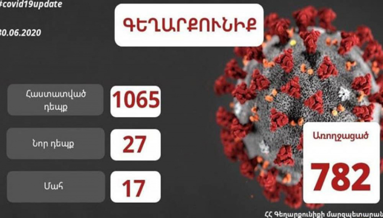 Գեղարքունիքի մարզպետ Գնել Սանոսյանը ֆեյսբուքյան իր էջում գրել է․ «Հունիսի 30-ի դրությամբ Գեղարքունիքի մարզում հաստատվել է կորոնավիրուսային հիվանդության 27 նոր դեպք, ևս 32 հոգի առողջացել է, արձանագրվել է մահվան 1 նոր դեպք։