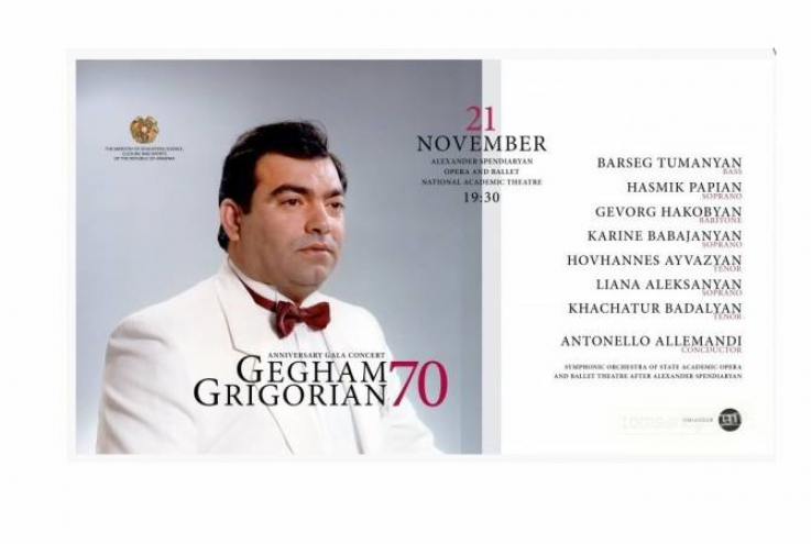 ՀՀ ԿԳՍՄ նախարարության աջակցությամբ «ԹԻ ԷՄ Փրոդաքշն»-ը նոյեմբերի 21-ին, ժամը 19։30-ին Ա․ Սպենդիարյանի անվան օպերայի և բալետի ազգային ակադեմիական թատրոնում կկազմակերպի աշխարհահռչակ տենոր Գեղամ Գրիգորյանի 70-ամյակին նվիրված գալա համերգը։