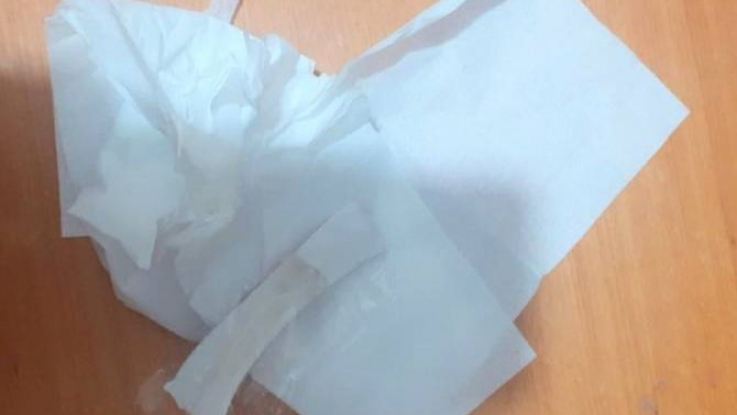 Ինչպես հայտնեցին ՀՀ ԱՆ քրեակատարողական ծառայության հանրային կապերի բաժնից, զննությամբ անձեռոցիկի տուփում հայտնաբերվել է ենթադրաբար թմրամիջոցով ներծծված, մաշկային կպչուն երկու ժապավեն (կիրառվում է մաշկից արյան մեջ ներթափանցելու կամ ժապավենը ջրում եռացնելու արդյունքում ստացված հեղուկը ներարկելու եղանակով):