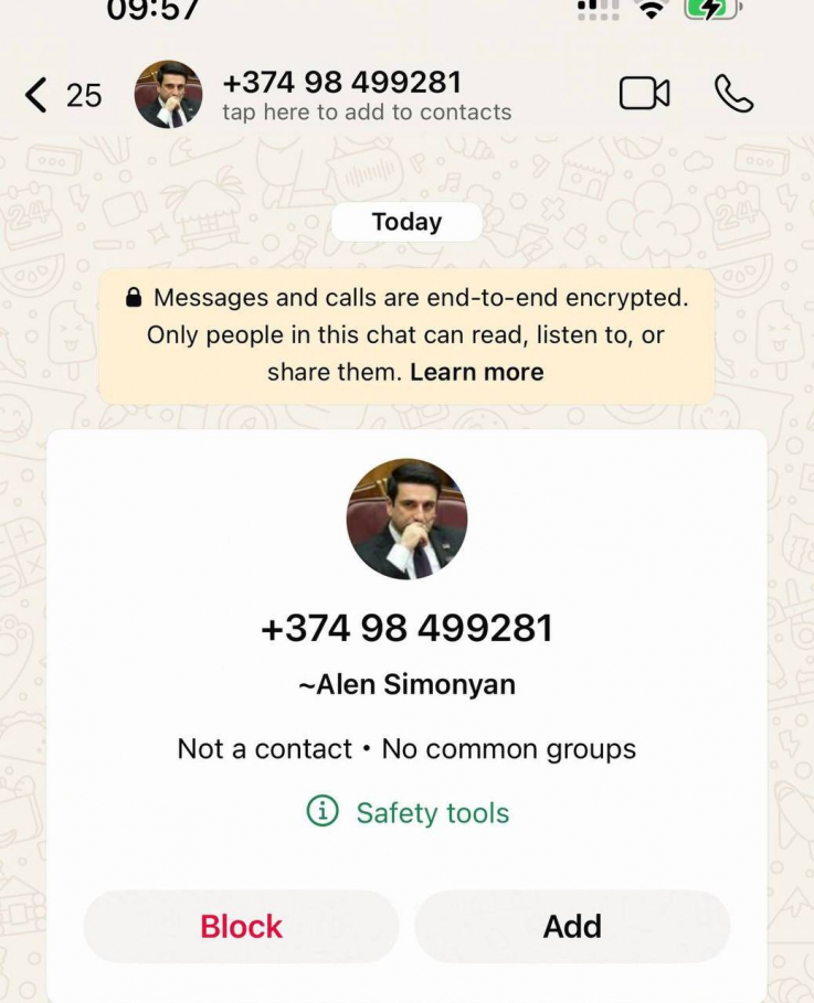 Իմ անունով WhatsApp հաշիվ է բացվել, խնդրում եմ անտեսել այդ հաղորդագրությունները. Սիմոնյան