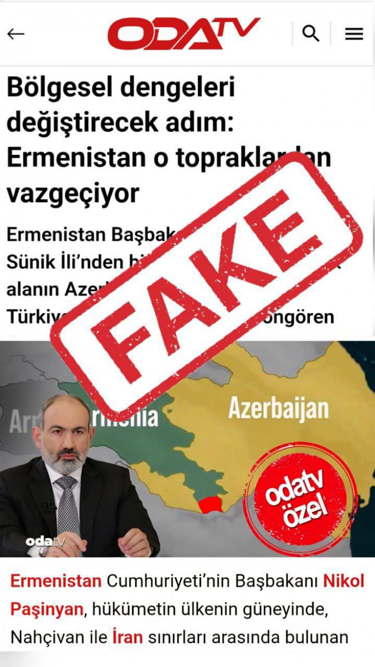 ՀՀ վարչապետի մամուլի քարտուղար Նազելի Բաղդասարյանն անդրադարձել է վերջին օրերին մի շարք միջազգային և տեղական ԶԼՄ-ներում, ինչպես նաև սոցիալական ցանցերում տարածող կեղծ տեղեկատվությանը, թե իբր վարչապետ Նիկոլ Փաշինյանը հայտարարել է Սյունիքի մարզի տարածքի մի հատվածը Ադրբեջանին փոխանցելու և Թուրքիայի համար հատուկ սահմանային գոտի ստեղծելու մասին։