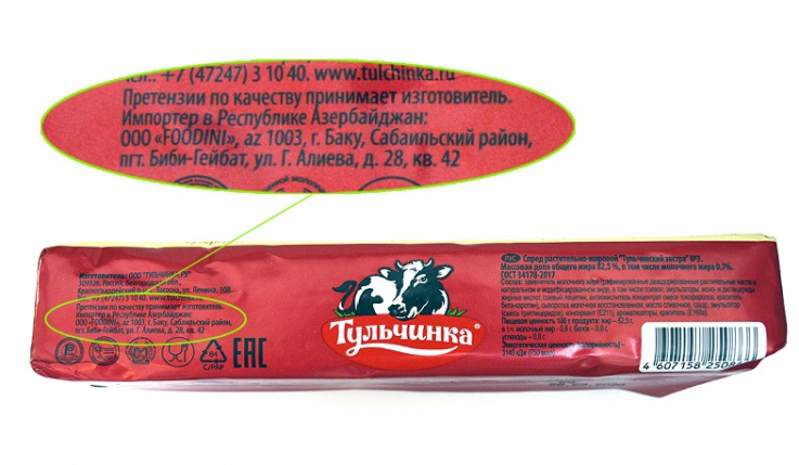 Ինչպես ավելի վաղ տեղեկացրել էինք, ՀՀ սննդամթերքի անվտանգության տեսչական մարմնի մասնագետները, սննդի շղթայի կազմակերպություններում վերահսկողական գործառույթներ իրականացնելիս, Երևանի «Սուրմալու» մանրամեծածախ շուկայում հայտնաբերել էին Ռուսաստանի Դաշնության «Տուլչինկա» ՍՊԸ-ի արտադրած, առանց հայերեն մակնշման, 82,5 տոկոսանոց բուսայուղային սպրեդ՝ նախատեսված Ադրբեջան ներմուծելու համար: